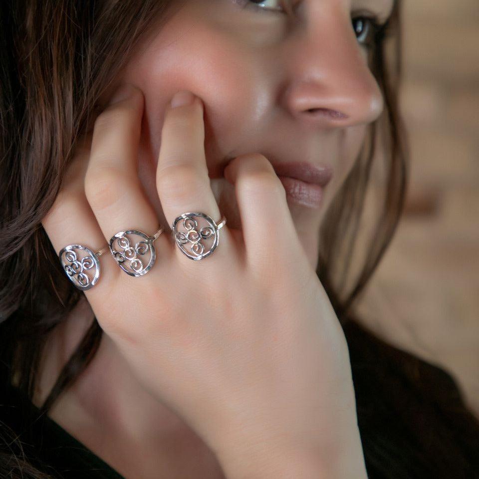 The seeds of life design is inspired by sacred geometry symbol composed of five overlapping circles, four circles representing the four directions, and one grounding circle in the center.