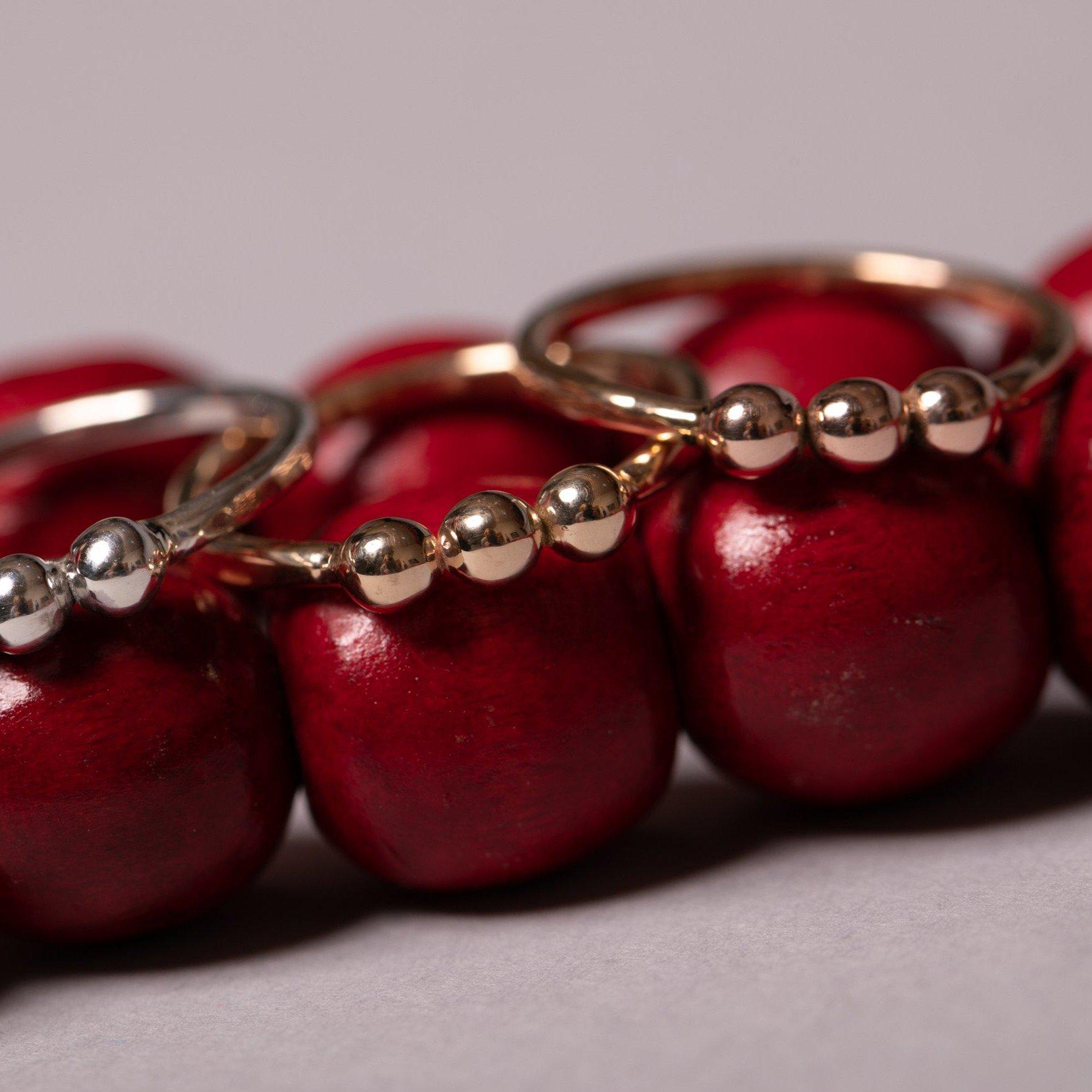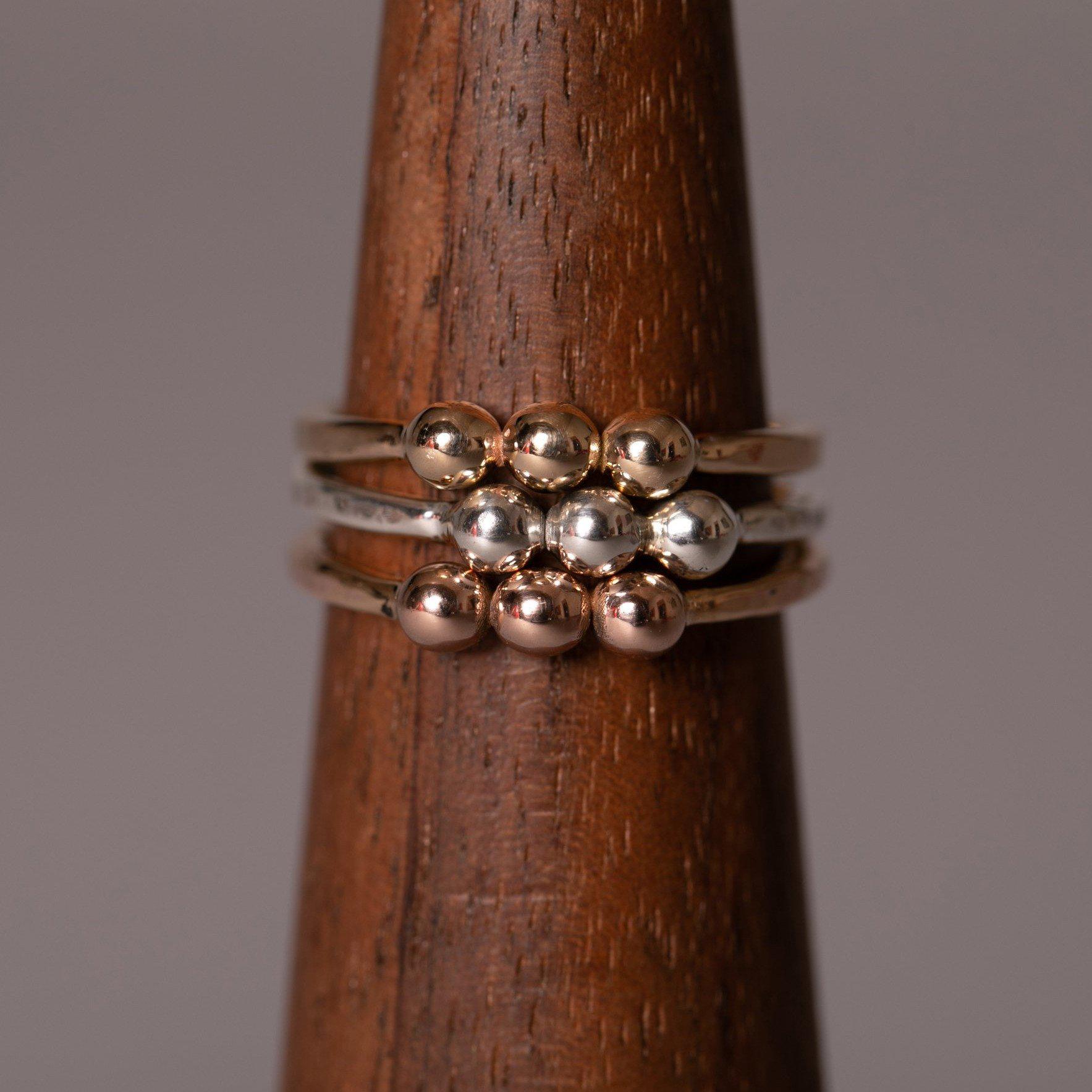 This ring has 3 dots that are 3mm each and the band is made with 14 gauge wire.