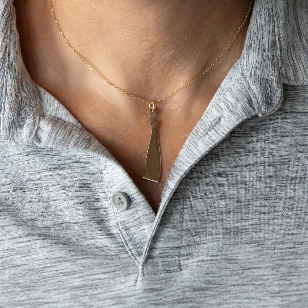 Carlo is a fourth generation Crucian and spent many days on his Great Grandmother's plantation out west. Many of you know it as Prosperity located on Mahogany Road in St. Croix. The Sugar Cane Machete is special because it has a hook at the end for pulling the cane after it's been cut. We have an old worn out version of this machete in our home and this summer Carlo and Ethan (our college intern) hand sawed this pendant out of a solid piece of metal and included a beveled knife edge and hook. Of course, our son, Achille, wanted one immediately and then all of our friends started to notice and covet it too.